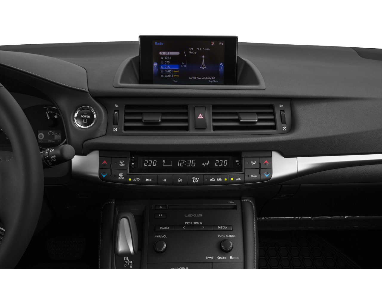 The Lexus CT 200h's sleek and modern design is complemented by a host of premium amenities. Dual-zone automatic climate control, a power driver's seat, and a leather-wrapped steering wheel provide a refined and personalized driving environment. The backup camera and dynamic gridlines offer added confidence and convenience when maneuvering in tight spaces. Enjoy the convenience of steering wheel-mounted audio controls, remote keyless entry, and speed control, all while surrounded by the premium sound of the 10-speaker audio system.